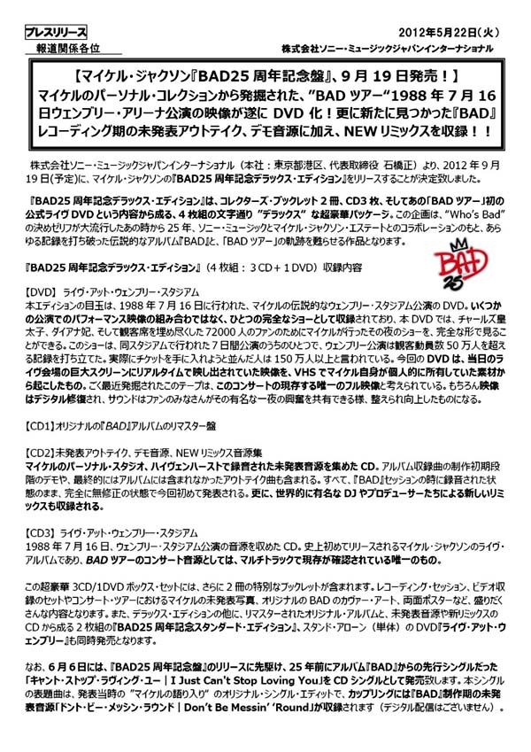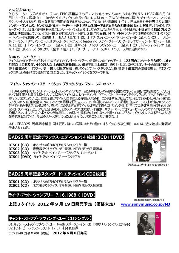 『BAD 25 Anniversary Deluxe Edition』 が発売となる。