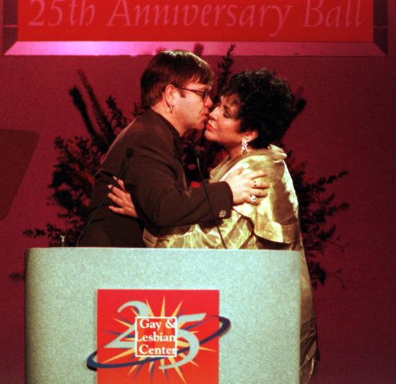 <※この写真は2001年のもの>エルトン・ジョンがリズの代理で賞を受け取ったそう。