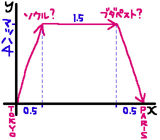 東京ーパリ間でマッハ4飛行するのは、ソウルを越したあたり~ブダペストまで。