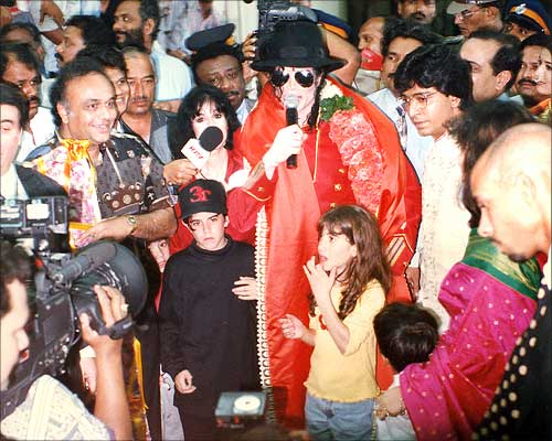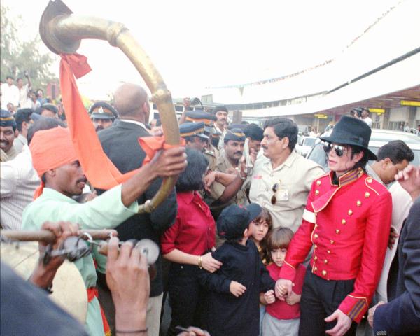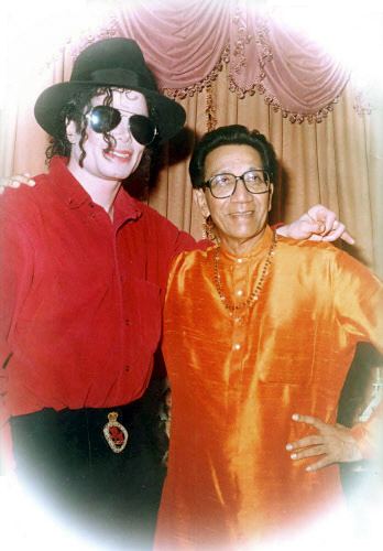 【別の日。マイケルは何かを鑑賞中。周りはマイケルを観賞中ww 】この、バル・サッカレー氏とのツーショが何枚かあるんだけど
