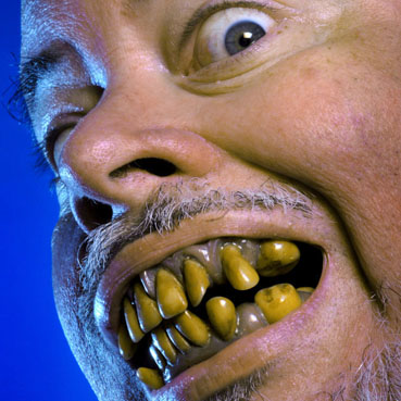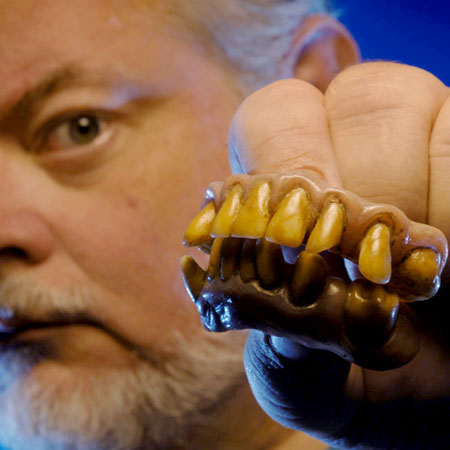 [ 当時の入れ歯をはめてみせるティム氏 ]“ダンスをしない” ゾンビも必要で