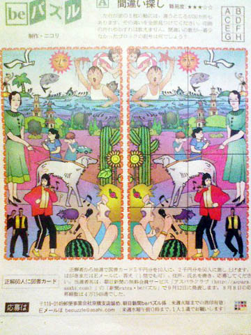 土曜の朝日にもれなく付いてくるbe版の、『beパズル』。
