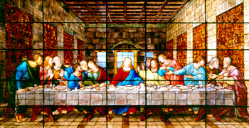 ダヴィンチの 『最後の晩餐』 を模したステンドグラスのそばに