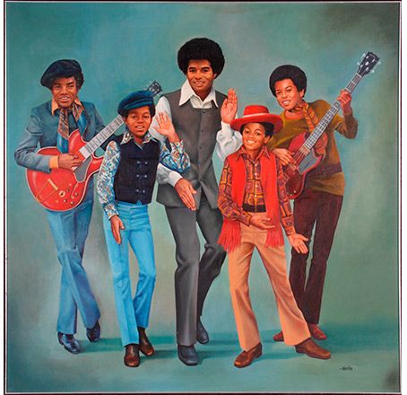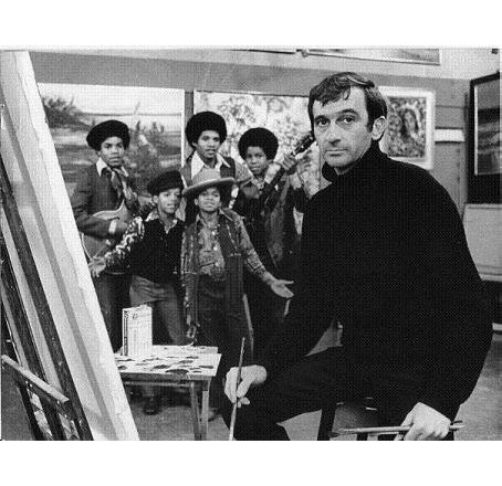 '70年、M.ワーリン画伯に生ポーズをとるJ5と、完成した油絵。