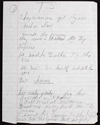 左: 最初はダイレクトに 『T.S.』 と書いていた、のちの 『D.S.』 の歌詞