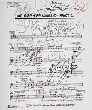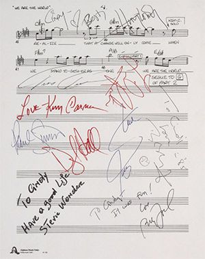Cindyさん(ローパー嬢ではない) に贈られた 『We Are The World』 楽譜。