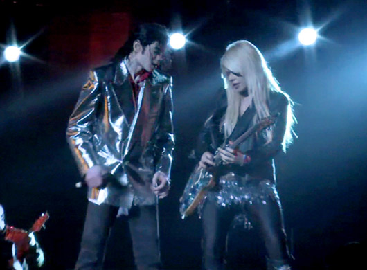 それから夜になって、今度はマイケル・ジャクソンがやって来て、彼の前でもプレイしたわ。