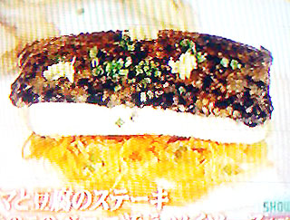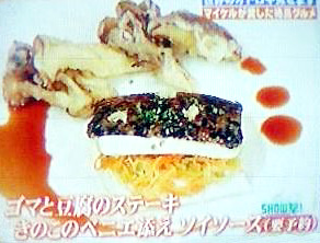 『ゴマと豆腐のステーキ きのこのペニエ添えソイソース』 を、
