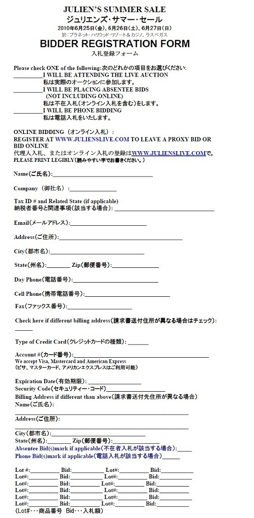 英語ができなくても簡単に入札できるFAX入札用紙&マニュアル付きで