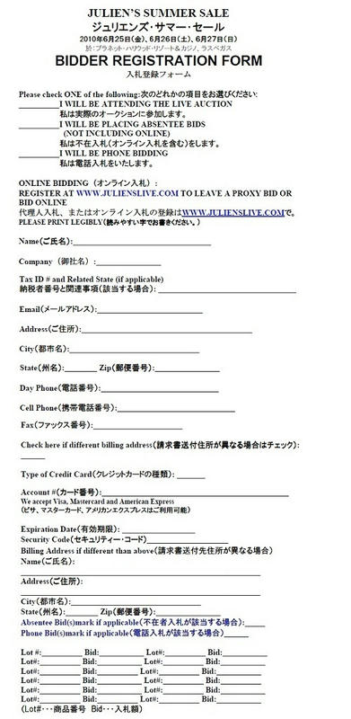 カタログ購入の場合、無料で入札用紙の書き方を教示。