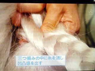 糸と一緒に編み込み、そこへ別の糸を引っかけてギュ―――ッとな