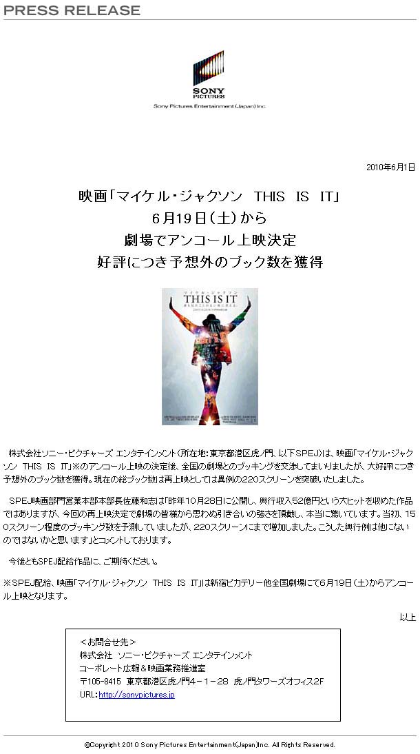 6/1付のソニー・ピクチャーズからのプレスリリースによると