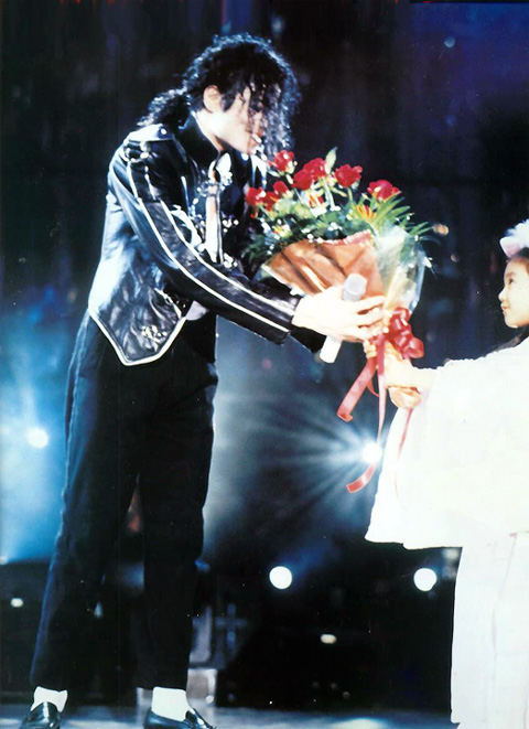 このバラの花束、ステージ裏でマイケルからもらったんだってー。