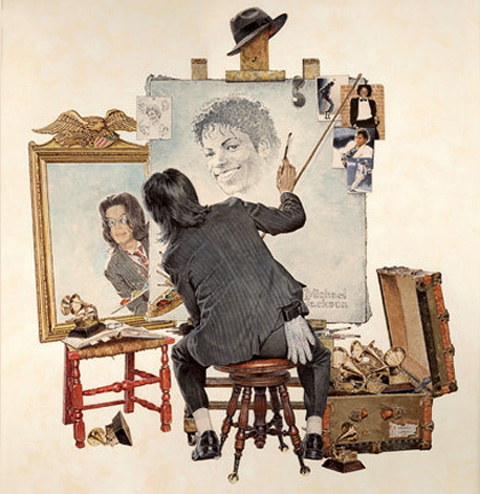著名なノーマン・ロックウェル画伯の 『Triple Self-Portrait』(1960)をパロったもの。