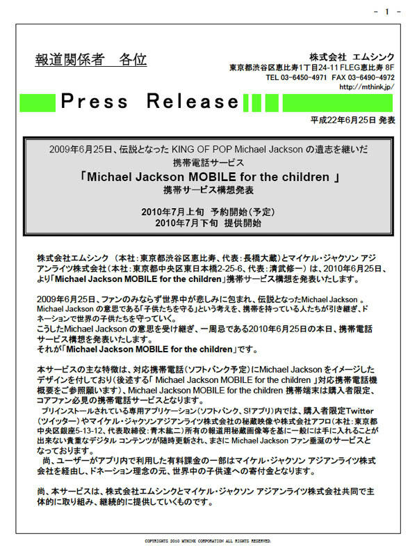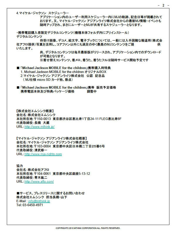 【Michael Jackson MOBILE for the Children】 という携帯サービスで