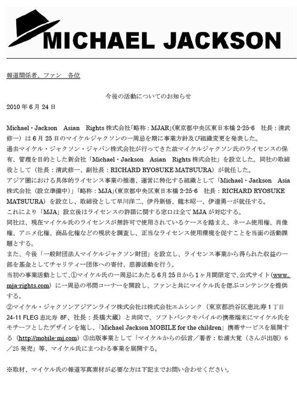 Michael Jackson Asian Rights社(以下MJAR社) に対し
