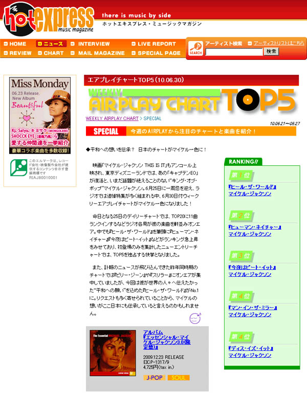 6月30日付ウィークリー・エアプレイ・チャートがマイケル一色になりました!