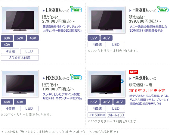 ≪対象モデル≫ 3D BRAVIA 『LX900』『HX900』『HX800』『HX80R』