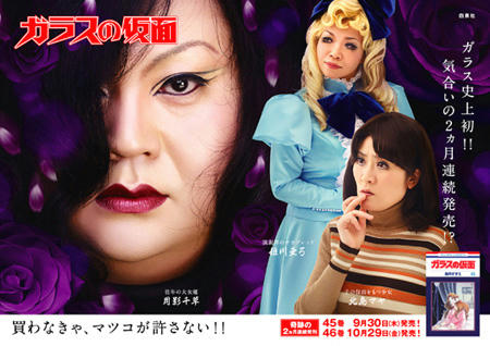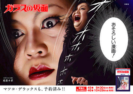 『ガラスの仮面』 最新刊コミックスの広告ポスター。