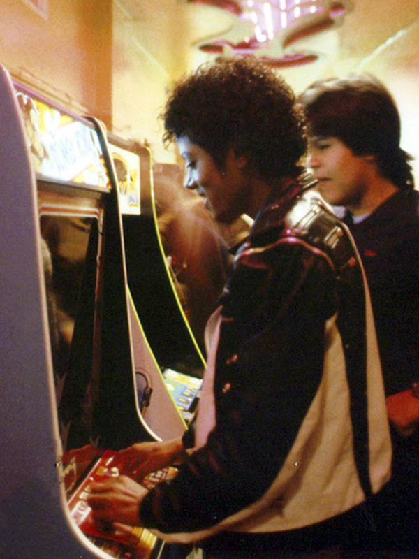 "Thriller" 撮影の合い間、ゲームに興じるマイコー