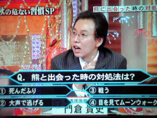 『熊と出会った時の対処法』 について、トートツに4択出題。