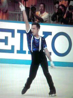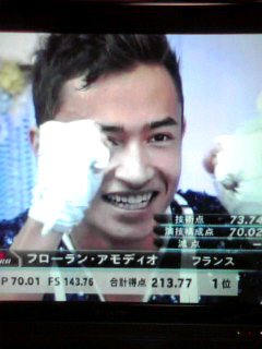 そのアモディオ選手は、冒頭はクラシック系の曲(多分)で滑ってたけど