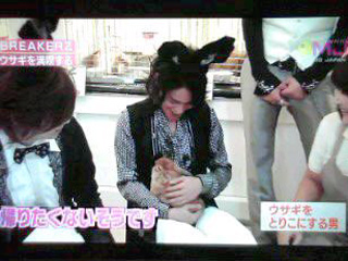ウサギ専門ショップでロケった3人。