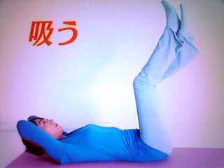3.息を吐きながらヘソを見る感じで上体をゆっくり起こし、息を吸いながらゆっくり戻す。