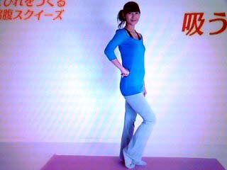 1.肩の力を抜いてまっすぐ立ち、鼻から息を吸っておなかを凹ませる。