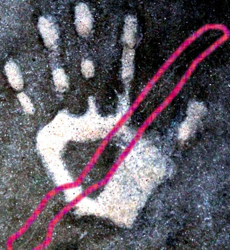 ハート型のような手のくぼみを横切るようにヒビが入っている