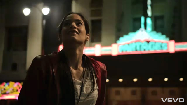 パンテージ・シアター前にてソフィア嬢のすぐそばで一緒に踊ってる赤い帽子のコ、