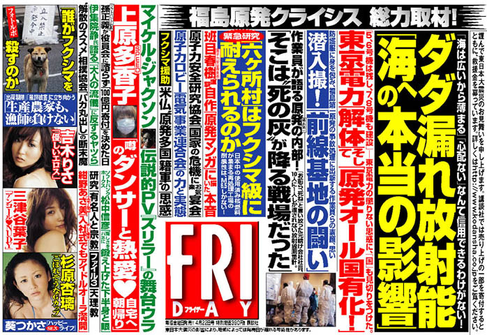 【フライデー】 2011年4月22日号 P.54 マイケル・ジャクソン 伝説的PV 『スリラー』 の舞台ウラ (4/28発売予定の写真集 『マイケル・ジャクソン:メイキング・オブ・スリラー』@日本版に絡む記事)