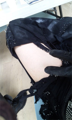左の太ももを自分撮りしたアングル。