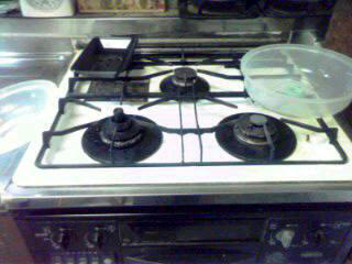 夕方、キッチンの換気扇&シンクの蛍光灯から