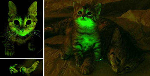 遺伝子操作により、 『光る猫』 を生み出したと発表。