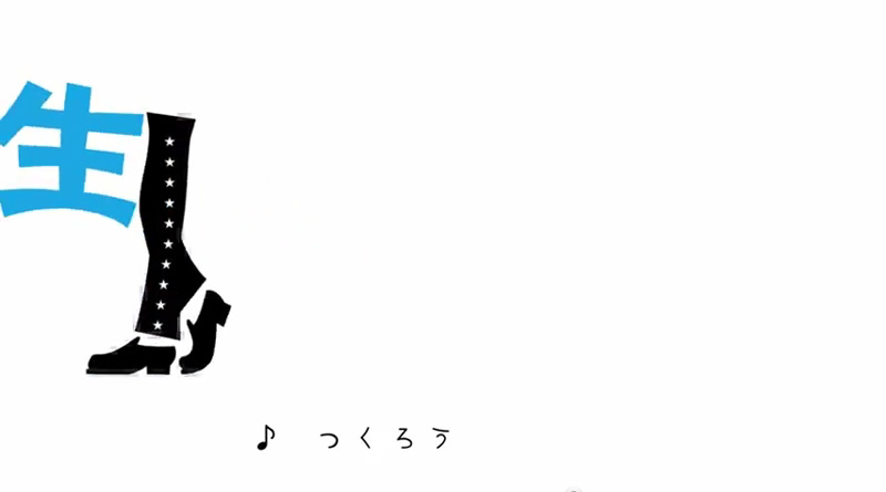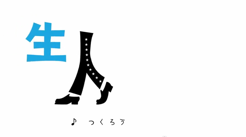 男の子が歌う人生の応援歌の歌詞に合わせて、人に見立てた人生の文字がアニメーションで画面の中を自由に動き回ります。