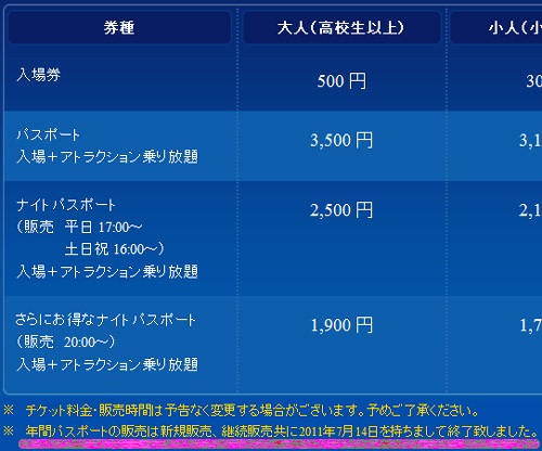 “年間パスポートの販売は新規販売、継続販売共に2011年7月14日を持ちまして終了致しました”。