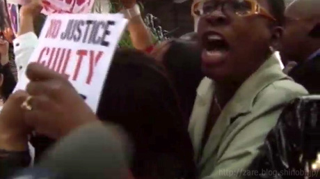 LA地裁外でマイケルコールを繰り返すMJファン達