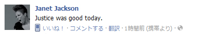 ジャネットが、日本時間の昨夜23時前(判決の約16時間半後)にFacebookでコメントを。