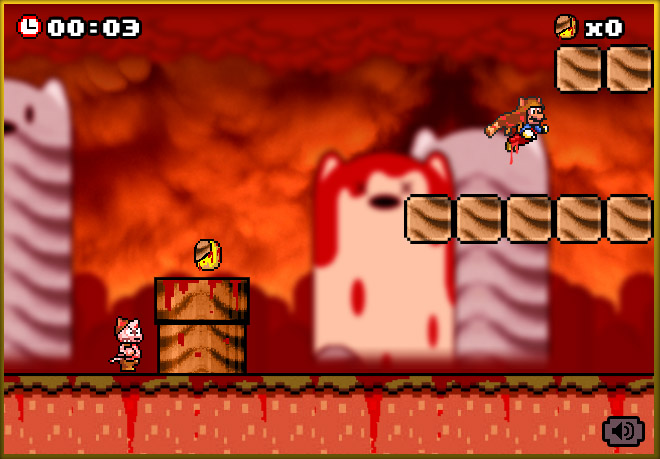 血のしたたる毛皮を着て飛ぶマリオ
