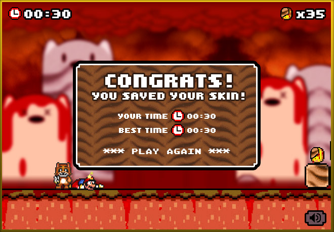 特設サイトにて皮を剥がれたタヌキがマリオを追いかけるFlashゲームまで用意。