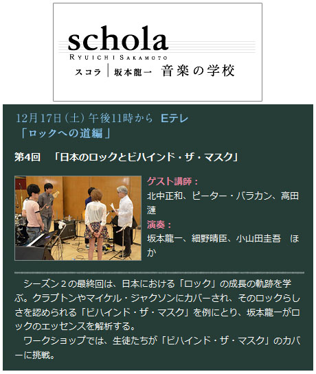 【スコラ 坂本龍一 音楽の学校】 @NHK Eテレ(旧 NHK教育)、