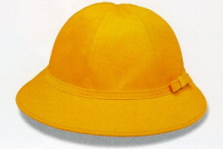 1年生は登下校時に黄色の交通安全帽をかぶるのが決まり。