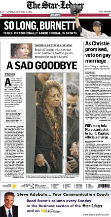 下は、本日付(※現地)の地元紙 『THE STAR-LEDGER』紙。
