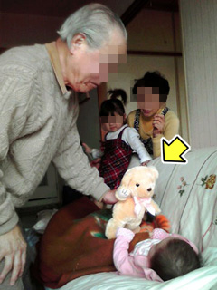 そんな彼女たち、じじ&ばば (正確には ひいじじ&ひいばば) にもたくさん遊んでもらいのの。