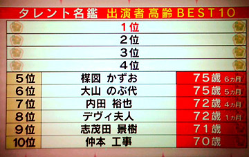 特設コーナーのひとつ 『出演者高齢ベスト10』 なる枠で、ソレは取り上げられのの。
