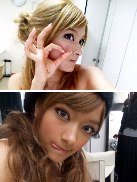 5.OKサインを作った両手の指で ほほのキニナル肉をぜんぶ囲う