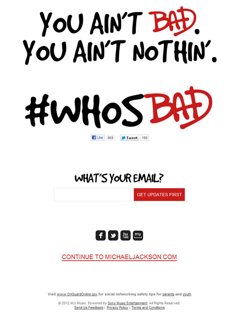 公式サイトmichaeljackson.comは、滞ってたメール配信をBAD25thで再開。