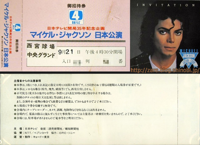 <西宮球場公演の招待チケット>一方マイケルは