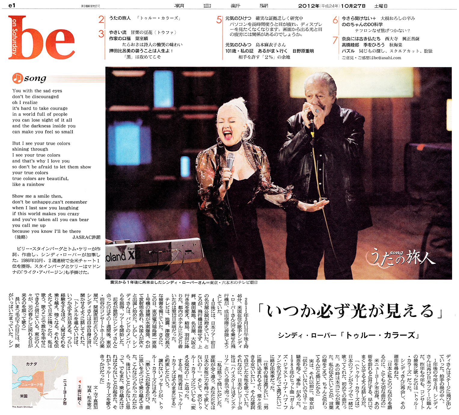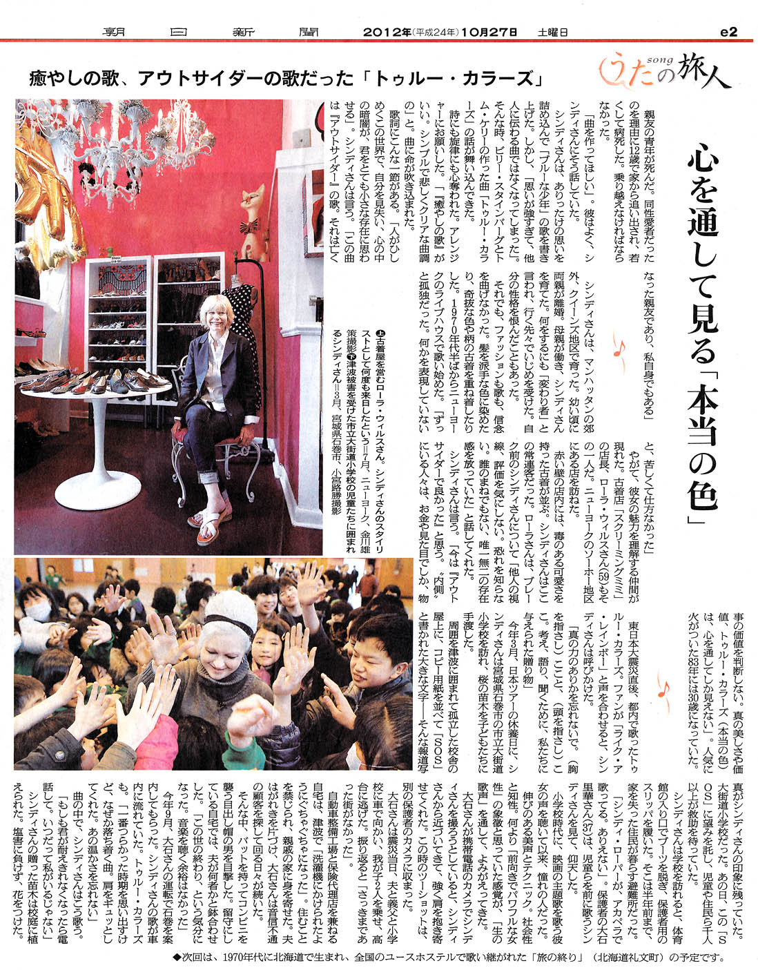それが "True Colors" を歌うきっかけだった」つづきは2面にて。